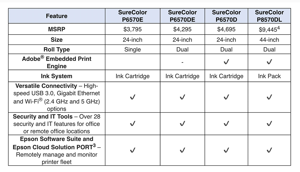 Epson’s SureColor P-Series introduces the 24-inch SureColor P6570E, SureColor P6570DE, SureColor P6570D, and the 44-inch SureColor P8570DL, featuring a distinctive flattop design and complete front operation to seamlessly integrate into diverse workflows and enhance productivity.
